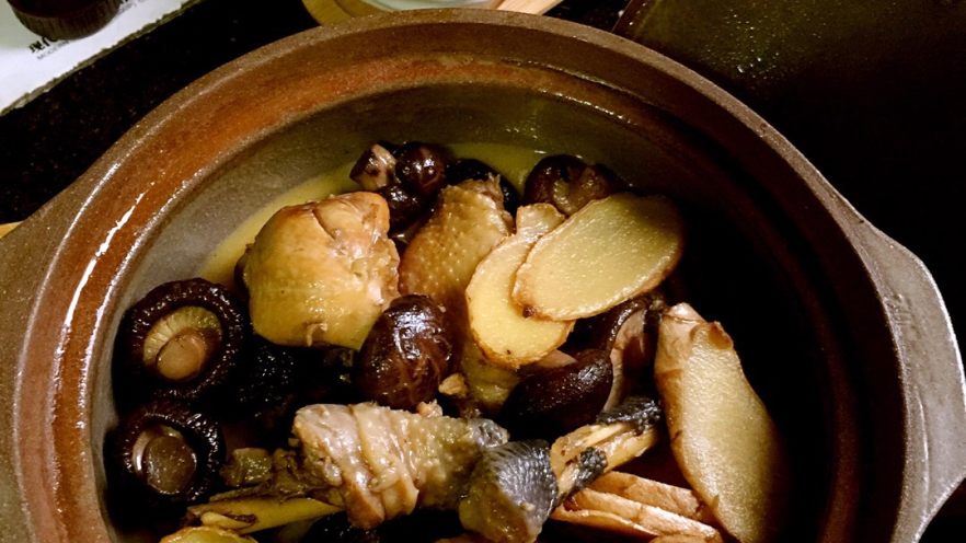 5. 烧得差不多的时候转到砂锅里最小火炖着,临上菜前端上就可以吃到热气腾腾的麻油鸡了!这道菜很适合小孩和老人,尤其是孕妇和月子里的产妇!
