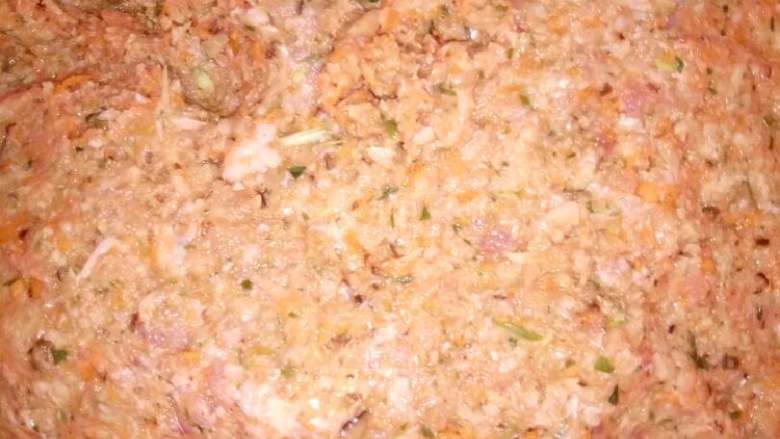3. 把肉打碎后一起混在一起,然后加点米酒。