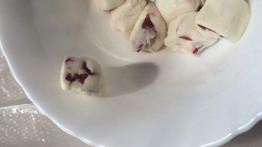 9. 应该把蔓越莓干切一下的。放入碗里(我忘切了....)