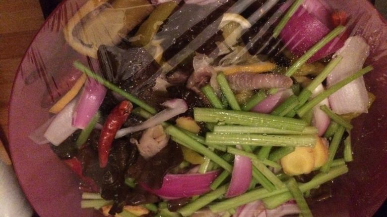 1. 当然是把食材切吧切吧了 然后找个大盆 装好食材