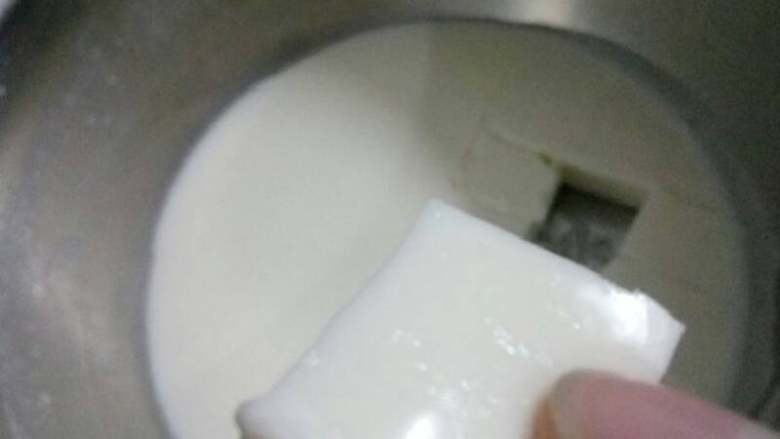 4. 将椰浆,牛奶,糖倒入器皿中搅拌均匀!
