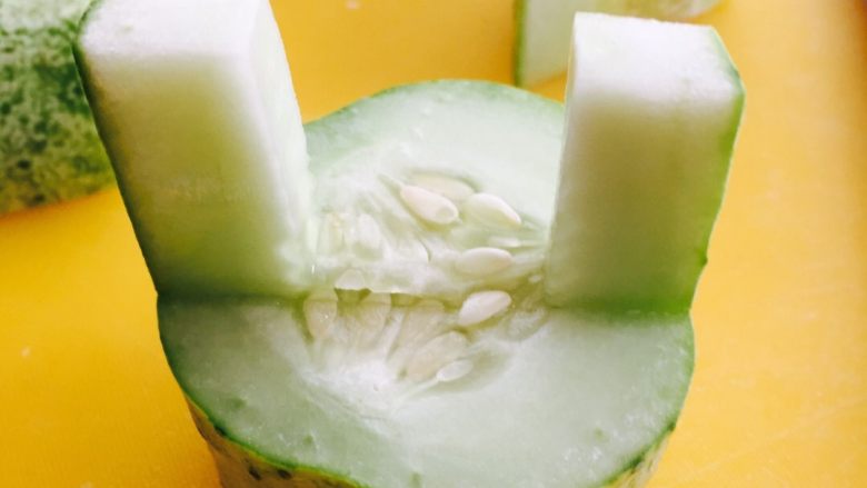 6. 用小勺挖出黄瓜中间的瓤