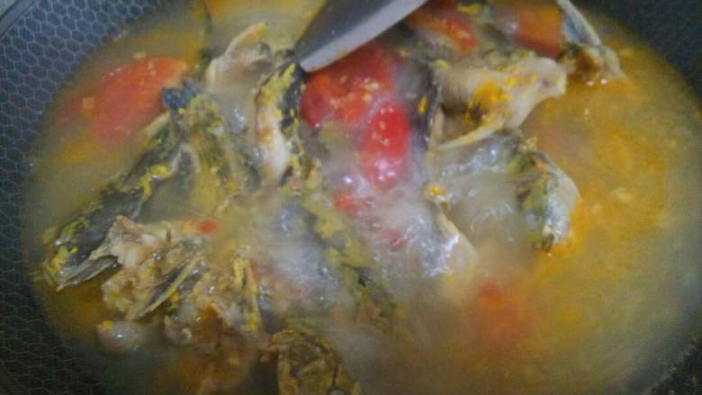 5. 水烧开后把鱼翻个面,再调小火煮5分钟