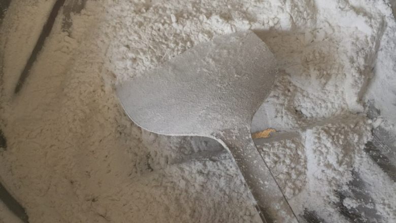 11. 蒸好的面团,冷切后,如图压成面皮
