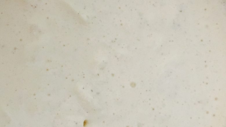 4. 把凉了的牛奶蛋黄放入打好的淡奶油中搅拌,