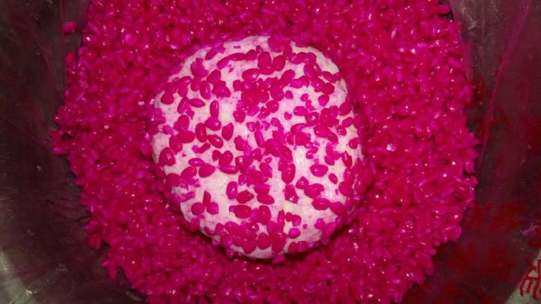 1. 食用色素用开水泡开,放入100克糯米染成红色,沥干水分备用。