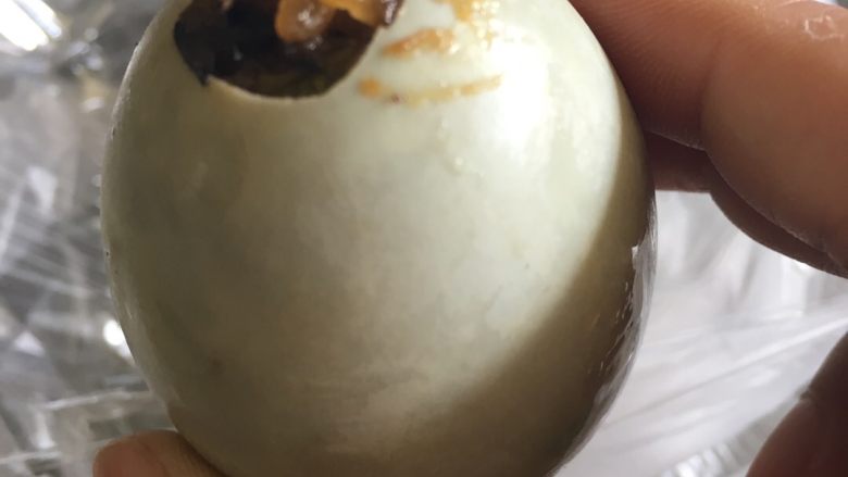 8. 吃到下面就是一颗完整的鸭蛋黄!