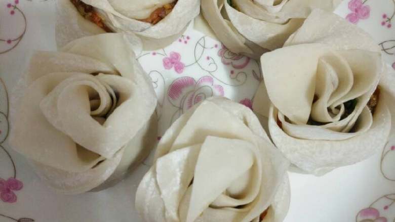 6. 卷好以后,蒸锅里放水,把包好的花上锅蒸