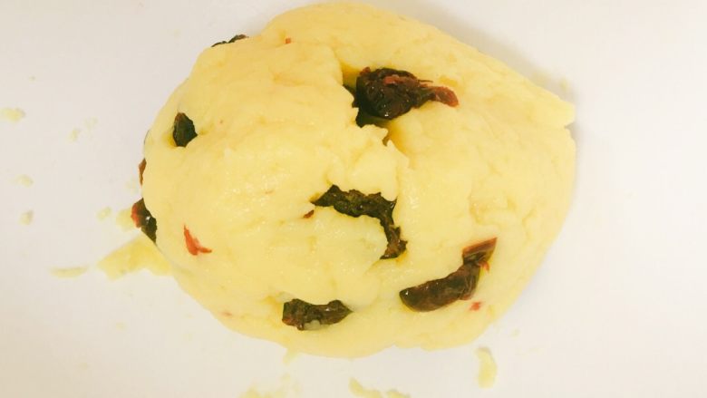 6. 另外一份加入蔓越梅干,揉均匀哦,蔓越梅干太大的话记得提前切碎一点哦!