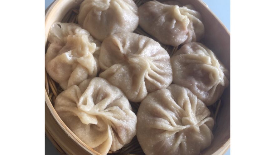 5. 将剂子擀成比饺子皮稍大点的面皮后包入肉馅,按普通包包子的方法包好即可,就是收口要比普通包包子略紧一些,以免蒸的时候漏汁