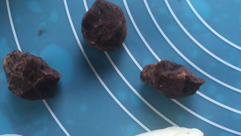 7. 红豆用压熟,制成泥馅,成团。冰皮面成团。