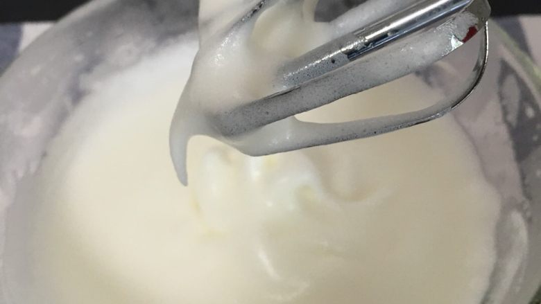 6. 淡奶油加糖打发至七八分,有纹路,放冰箱备用