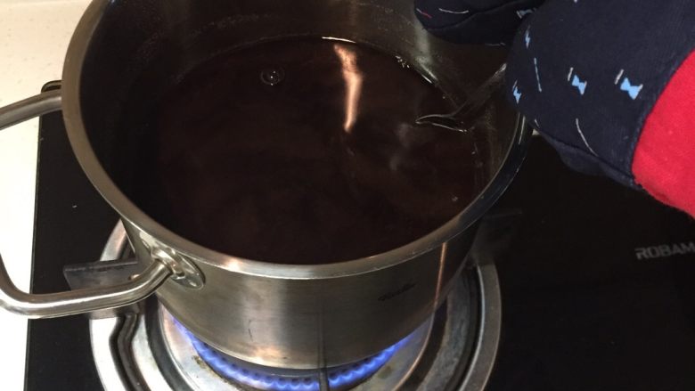 2. 小火慢煮,边煮边搅拌,以免糊锅,涨开后1分,关火即可倒在模具里。