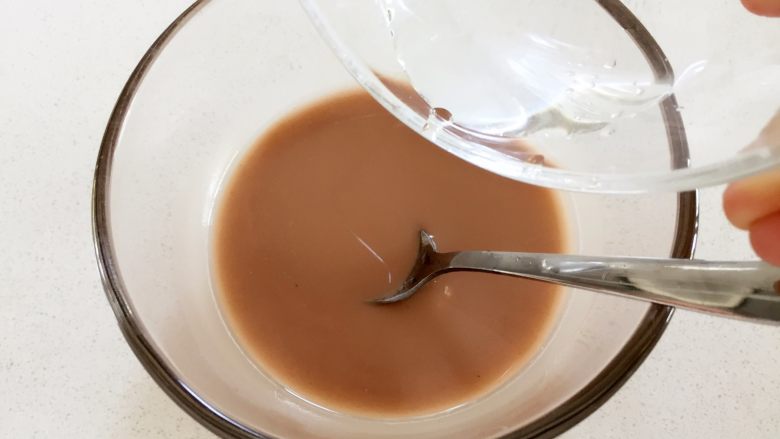 2. 在藕粉中缓慢倒入40g温水,搅拌成均匀藕浆