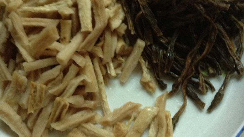 4. 4.将干豆角和萝卜干捞出切断待用。