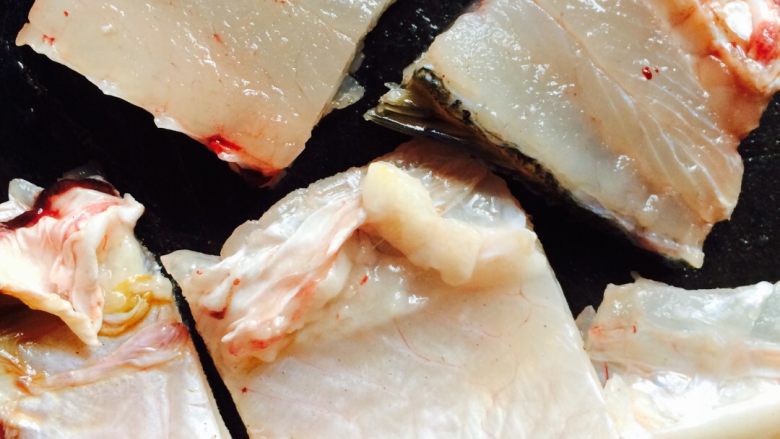2. 把鲈鱼两边的肉用刀片出,骨头与肉分开,成三边了