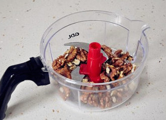 2. 盖上盖子将核桃仁搅打的细碎一些待用。