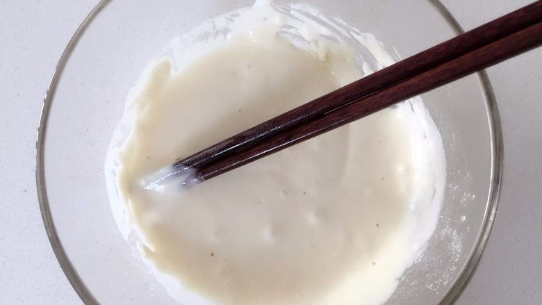 5. 把准备好的面糊,倒入保鲜袋中,放在一边备用。
