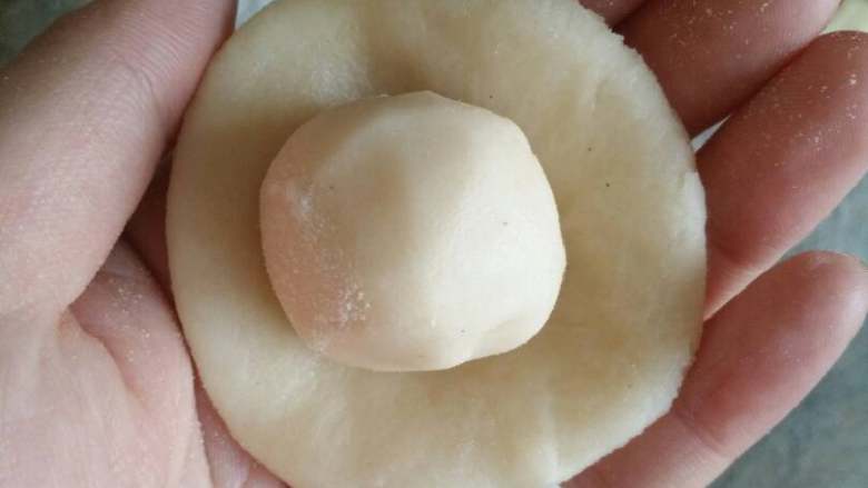 5. 将松弛好的油皮和油酥各自平分成16等份