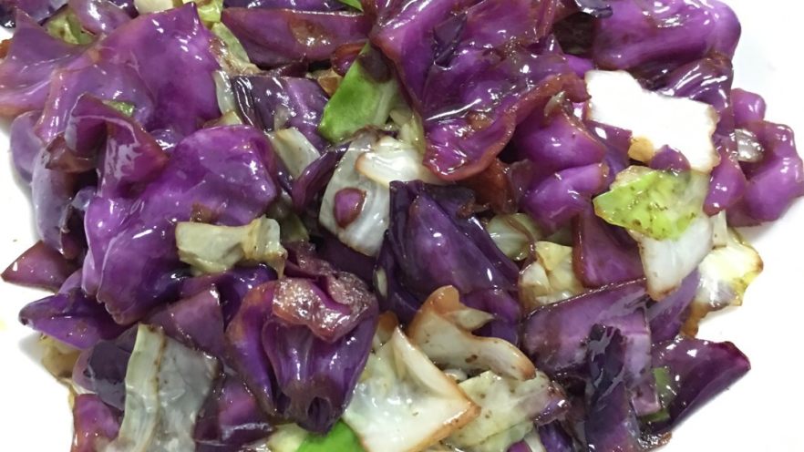 6. 炒至紫甘蓝微微变软,尝试一下味道,咸淡合适,即可出锅。