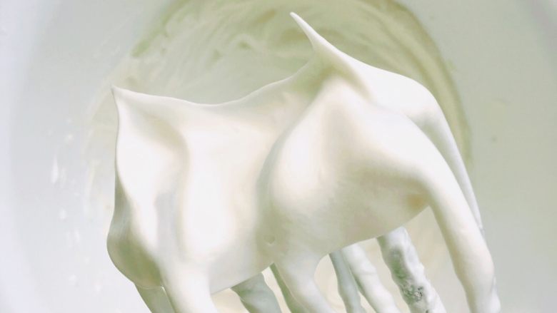 7. 拎起打蛋头有稳定不掉落的小尖角,即打发完成!
