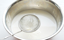 3. 待水变成牛奶色,将水过滤到一个大盆中;