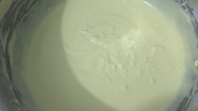 6. 分三次将打好的蛋白霜加入蛋糊中.搅拌均匀
