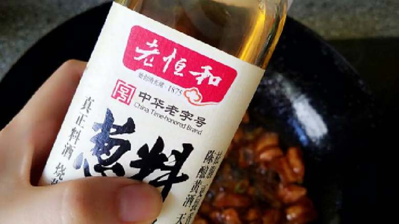 4. 倒入肉片,加入料酒,继续翻炒