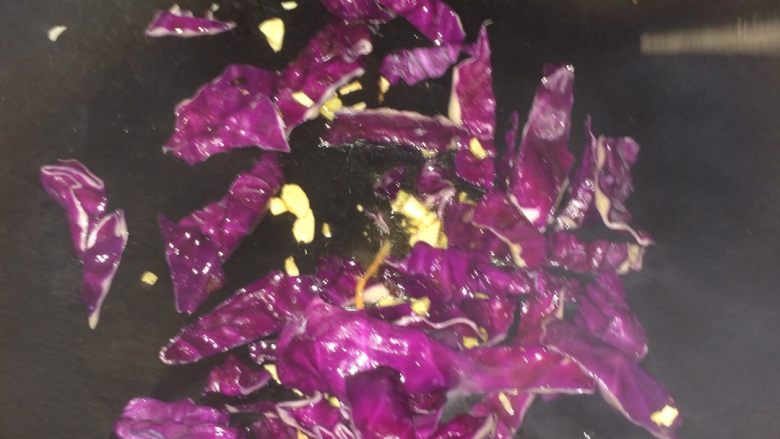 4. 锅里放少许油,加入姜蒜,在加入紫包菜,炒软