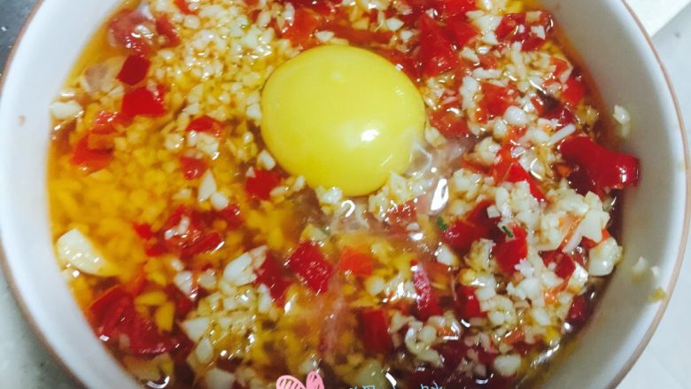 9. 刚才炒香的剁椒堆在鸡蛋四周,尽量让蛋黄在中间
