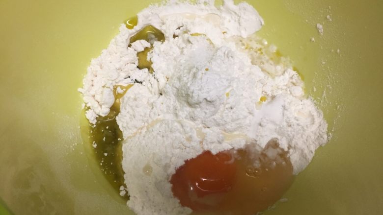 7. 做生面的材料一气放一起搅拌,捏团。