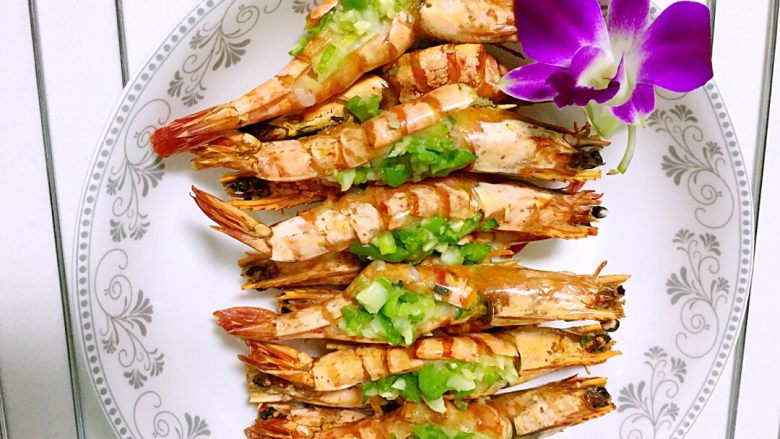 - 虾一定要腌制入味30分钟左右,青椒蒜蓉也一定要用盐腌2、3分钟