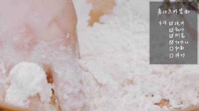 1. 干黄酱倒入盆内,加入甜面酱、水,搅拌