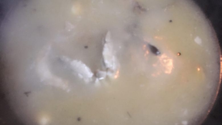 11. 熬制10分钟左右,汤底为乳白色立刻。(如果想节约时间可大火熬开)