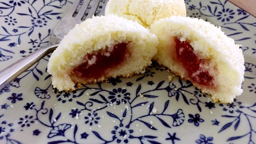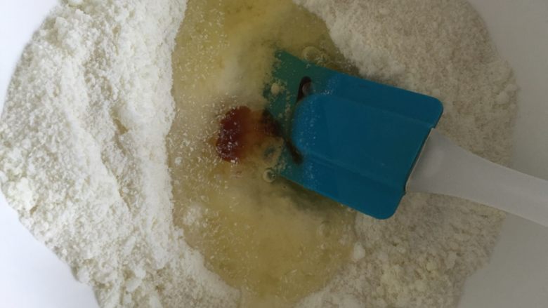 3. 取出70g椰丝(10g备用)加入奶粉、白糖、过筛低筋面粉