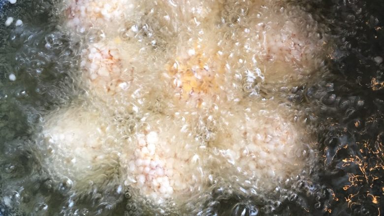 13. 倒多少油就看你做的鸡米花大小,最好没过鸡米花,先小火放入筷子冒小泡泡就差不多了