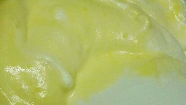 2. 蛋黄和蛋白分离,分别至于无油无水的容器内, 蛋黄加入淡奶油和糖拌匀。
