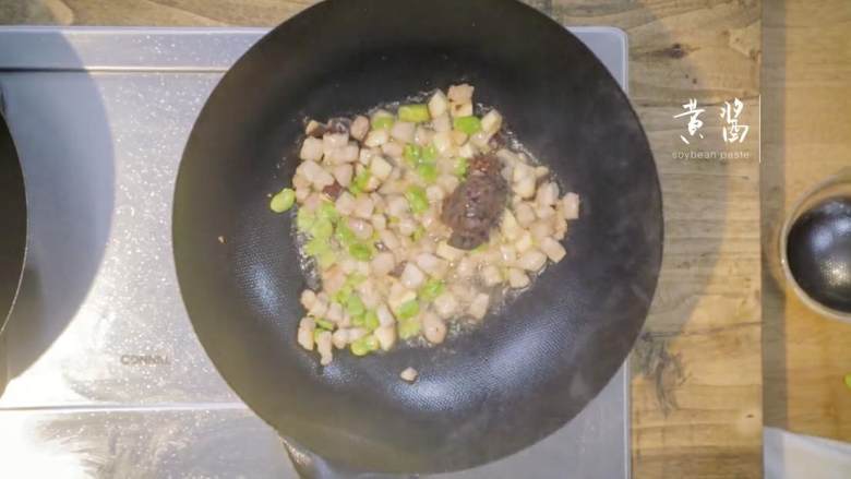 16. 2-7葱切片,热锅倒入适量花生油,倒入葱段儿翻炒