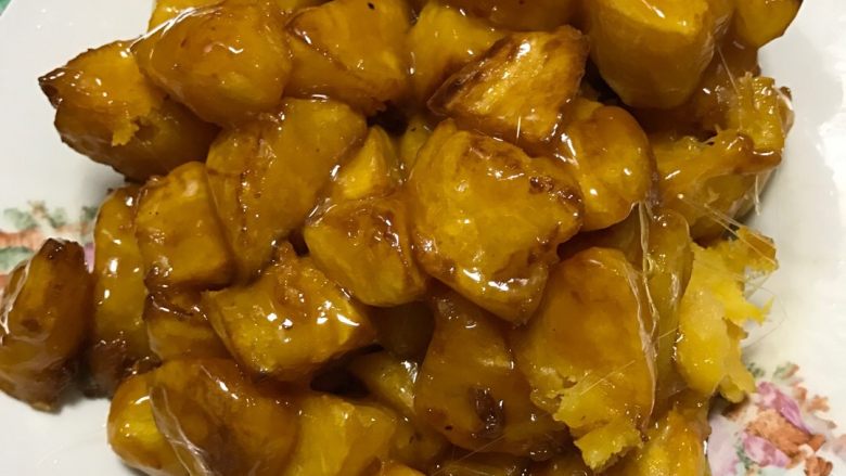 2. 炸至金黄色将白薯块捞出出来,把油倒出来。