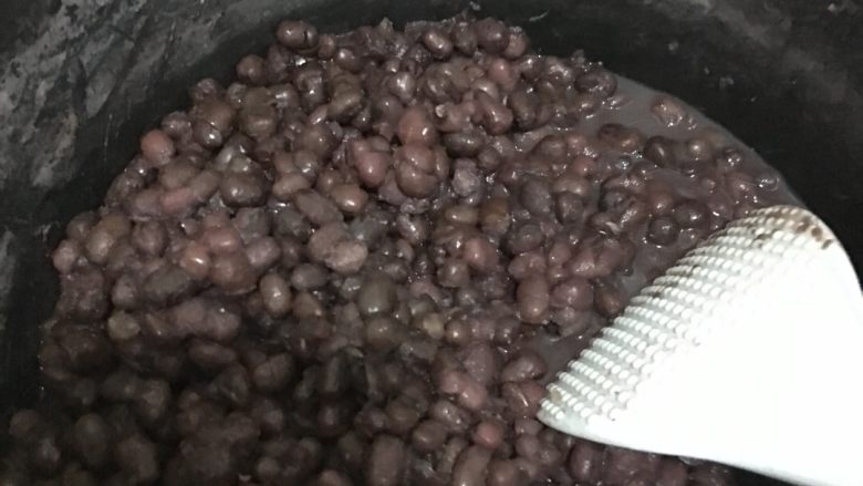 5. 煮到红豆一摁就烂时就可以放糖啦!