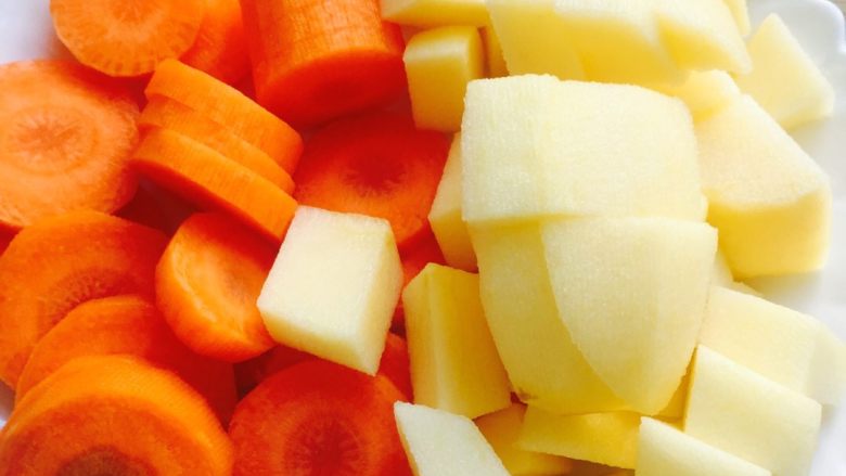 2. 胡萝卜洗净去皮切片,苹果洗净去皮切成块状