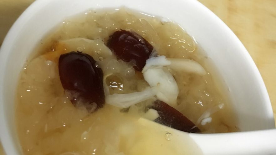 - 皂米跟桃胶都是要提前一个晚上泡的,早上起来的时候换水,我都都是晚上泡,早上换水,下午的时候就用矿泉水泡着,然后把水一起炖的,百合平时都是用干百合的,这次刚好在超市看到新鲜百合就买了,要注意的是百合要在快炖好的时候再下,不然就不好吃啦啦啦啦😁😁