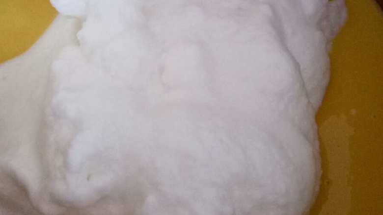 3. 打蛋清,一直打到呈奶油状,能够捞起粘在打蛋器上不往下滴为止!