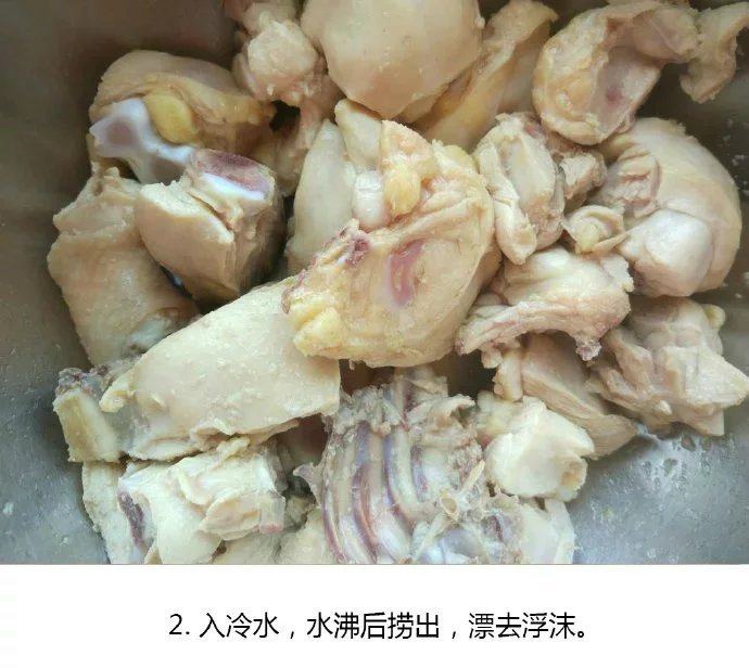 5. 下鸡块,炒出多于的水分。