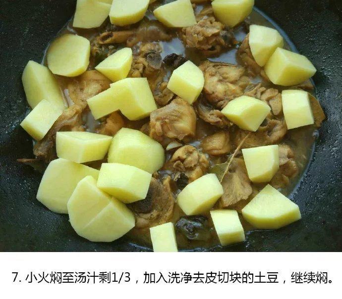 7. 小火闷之汤剩3分子1加入去了皮的土豆。继续闷。