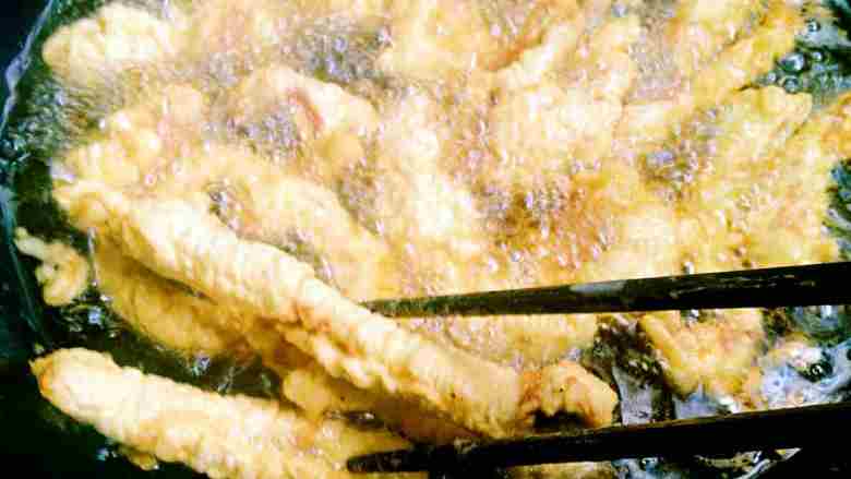 6. 这个复炸过程要快,油温要高,才能外皮更脆哦