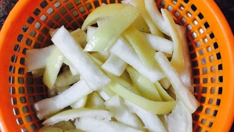 - 2,为了去除柚子皮的苦涩味道,需要用水泡2.3天,每天还用沥干换水。