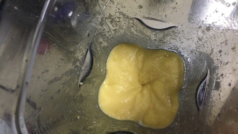 3. 放料理机里,连同水一起倒入,加糖打成糊