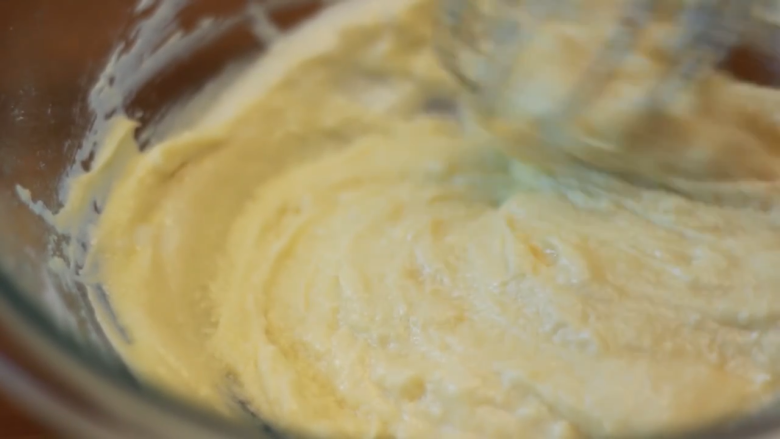 3. 无盐牛油56克,加108克糖,搅打至混合