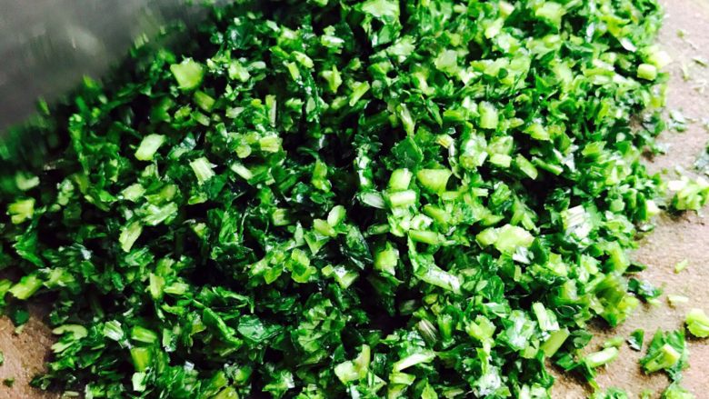 2. 菠菜叶洗净后切碎榨汁后过滤后和成面团、醒发30分钟左右